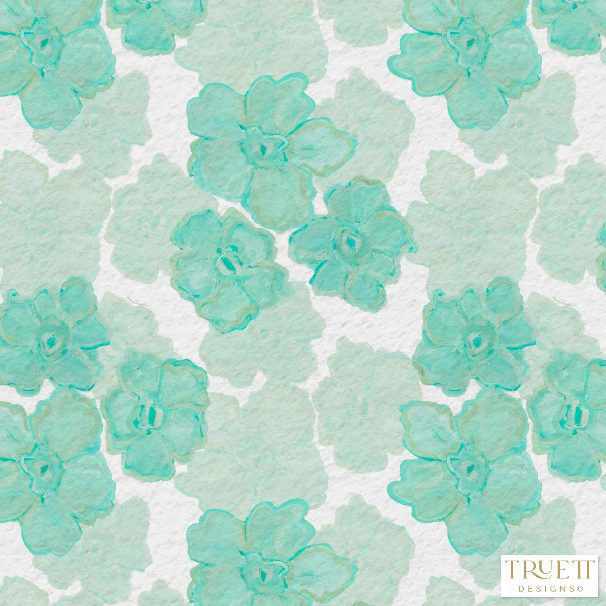 Trois Fleurs Verte, Green Floral Luxury Wallpaper