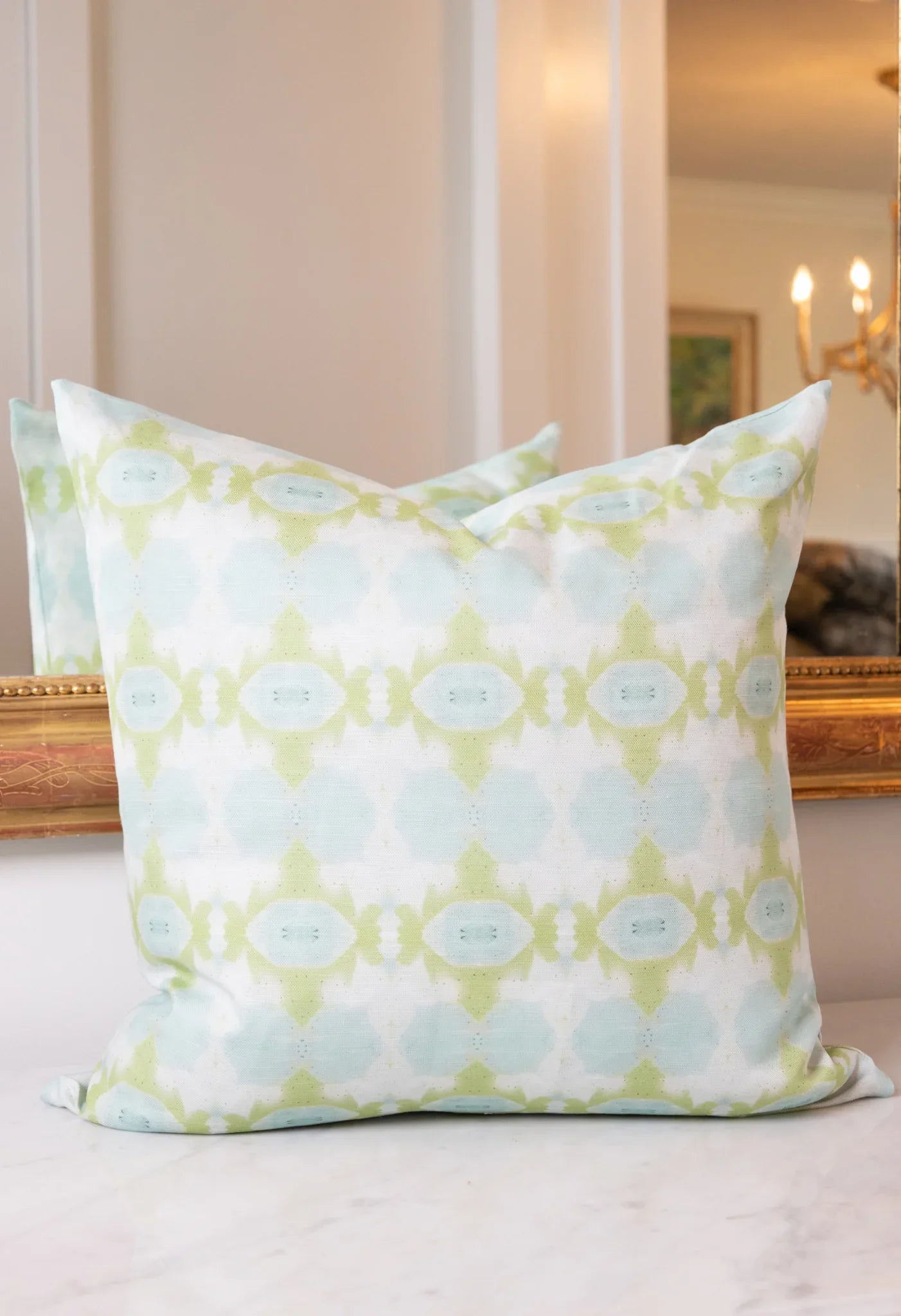 Sweet Gum Chartreuse Green & Blue Luxury Pillow Small Repeat