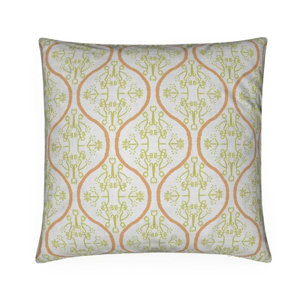 Watercolor Damask Chartreuse & Orange Luxury Pillow