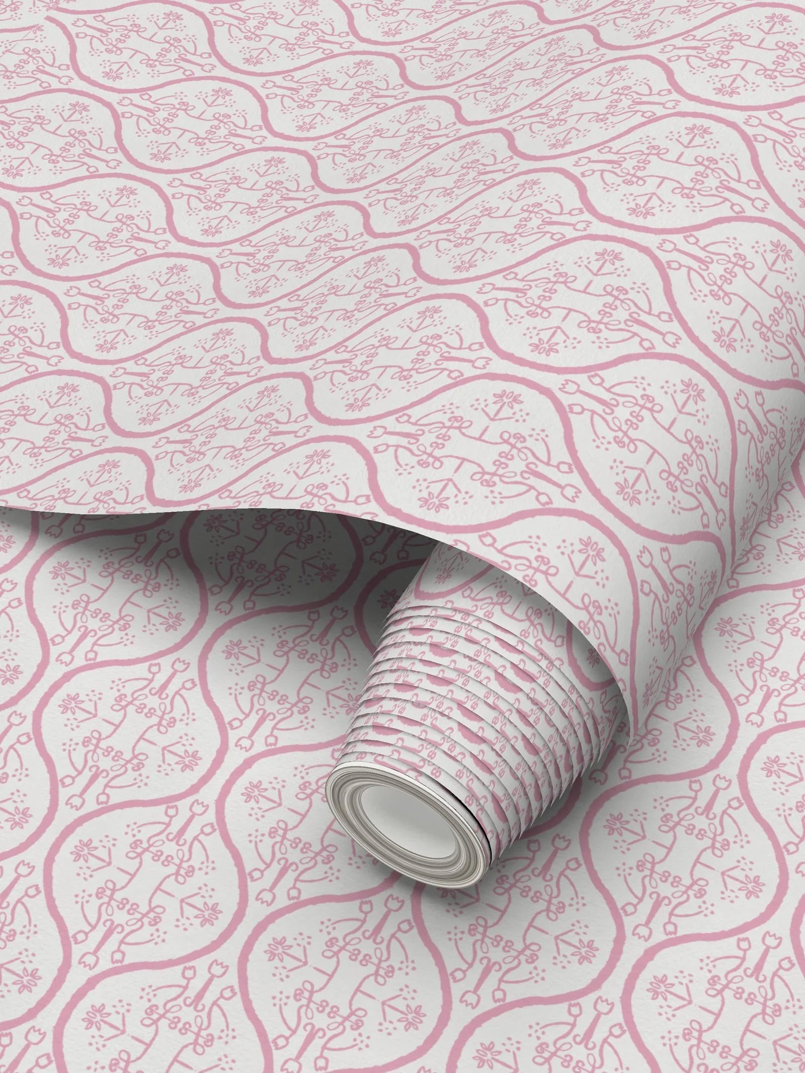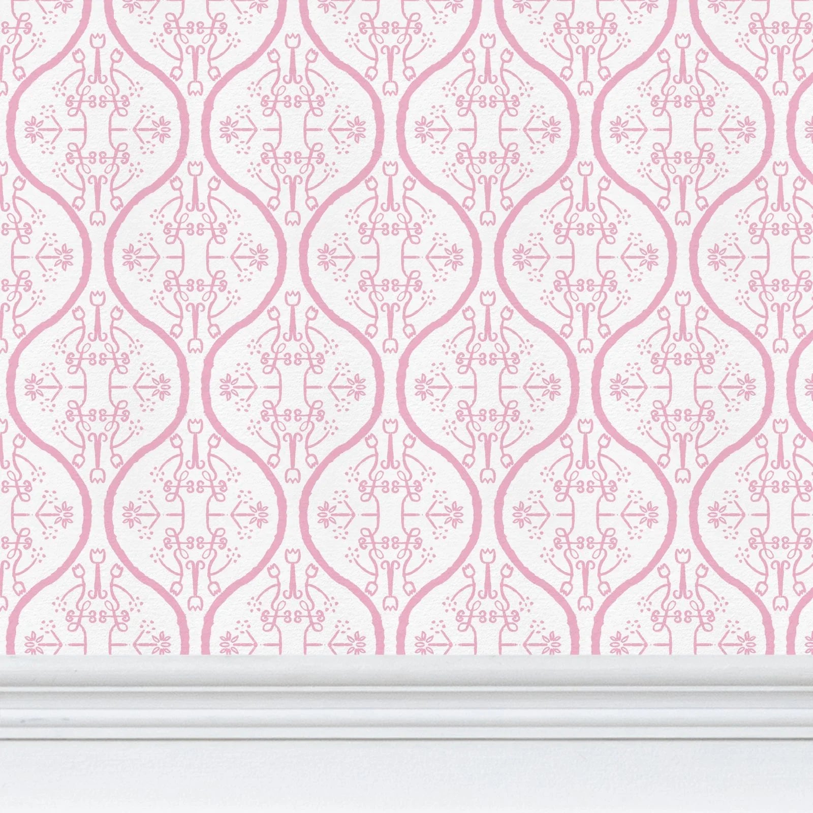 Watercolor Damask White & Pink Luxury Wallpaper Small Repeat