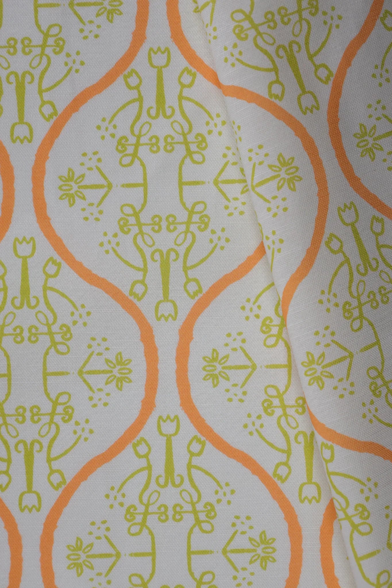 Watercolor Damask Chartreuse and Orange Luxury Fabric by the Yard