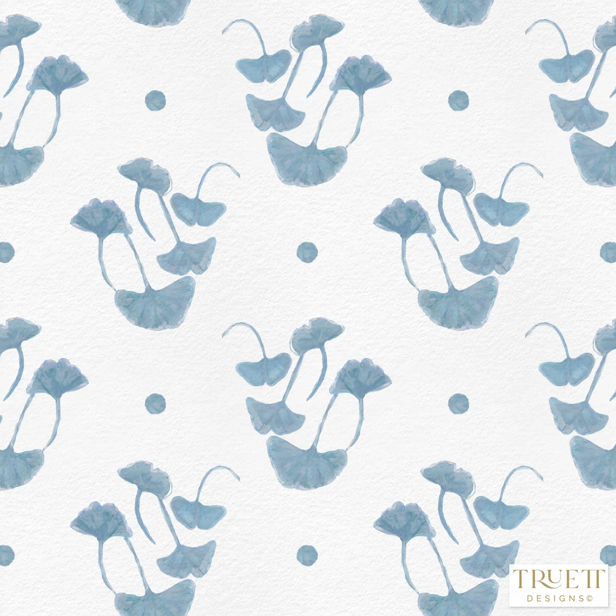 Ginkgo Colonial Blue Luxury Fabric by the Yard